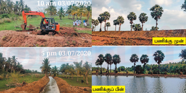 ஆனா, தூர்வாரப்படாமல் மோசமாகக் கிடந்தது. 564 ஏக்கர் பரப்பளவு கொண்ட அந்தக் குளத்ைத சீரமைக்கிற பணியைத் துவக்கினோம். கிட்டத்தட்ட 107 நாட்கள் வேலை பார்த்தோம். அடுத்த ரெண்டு மாசத்துல தண்ணீர் நிரம்பிடுச்சு.