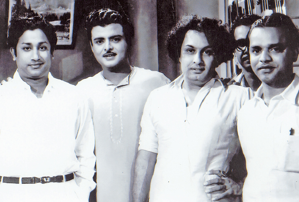 தமிழ்த் திரையுலகில் இரண்டு சிகரங்களாகத் திகழ்ந்த எம்.ஜி.ஆர், சிவாஜியுடன் காதல் மன்னன் ஜெமினியும், புகழ்பெற்ற ‘ப’ வரிசைப் பட இயக்குனர் பீம்சிங்கும் இருக்கும் இந்த அபூர்வ புகைப்படத்தை எடுத்தவர் சிம்மையா. கருப்பு வெள்ளைக் காலத்து நம்பர் ஒன் சினிமா புகைப்படக்காரர். இந்தப் படம் பற்றி அவர் நம்மிடம் பகிர்ந்துகொண்ட தகவல்கள்...